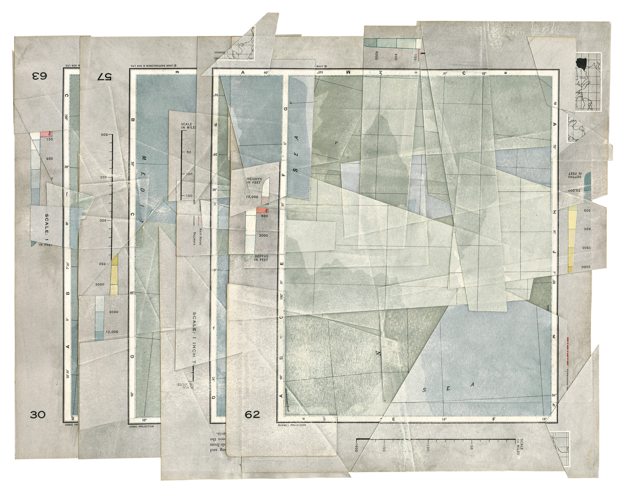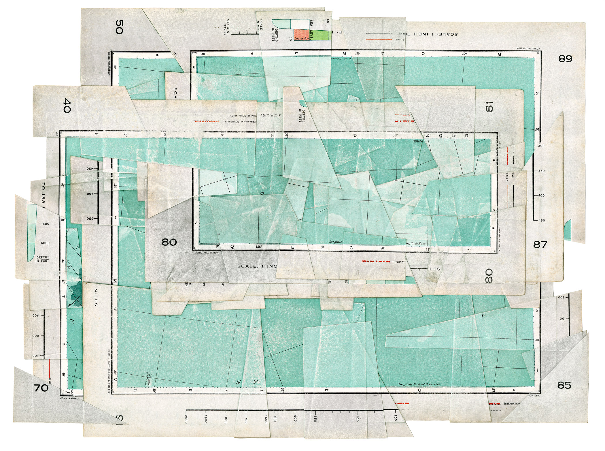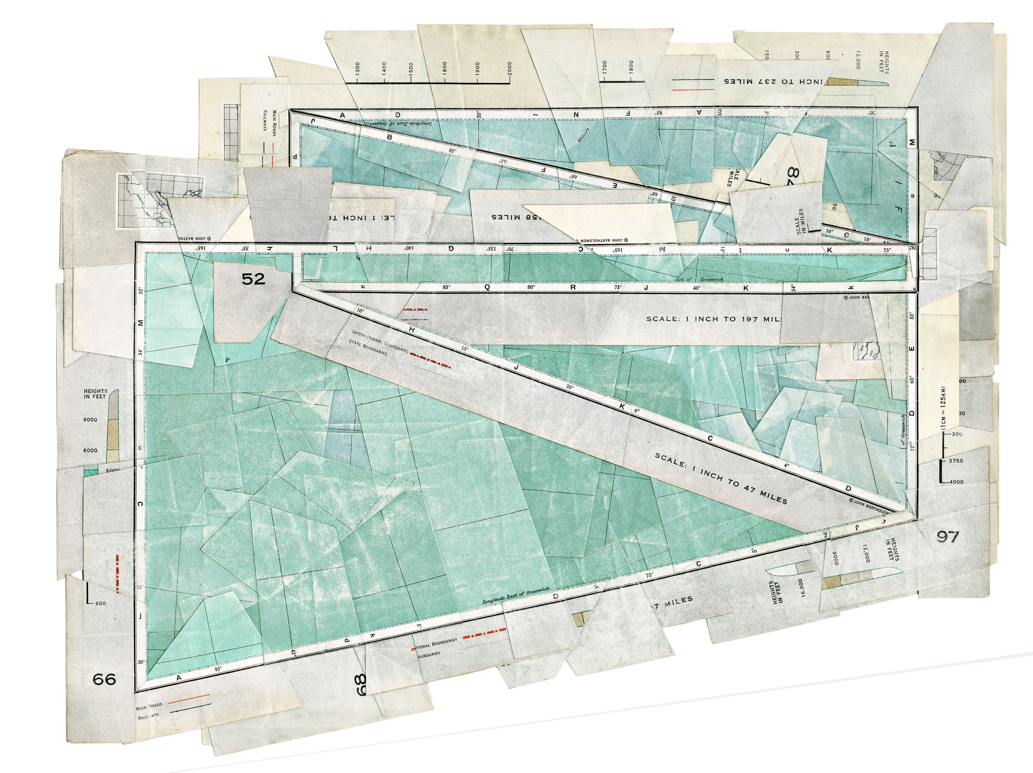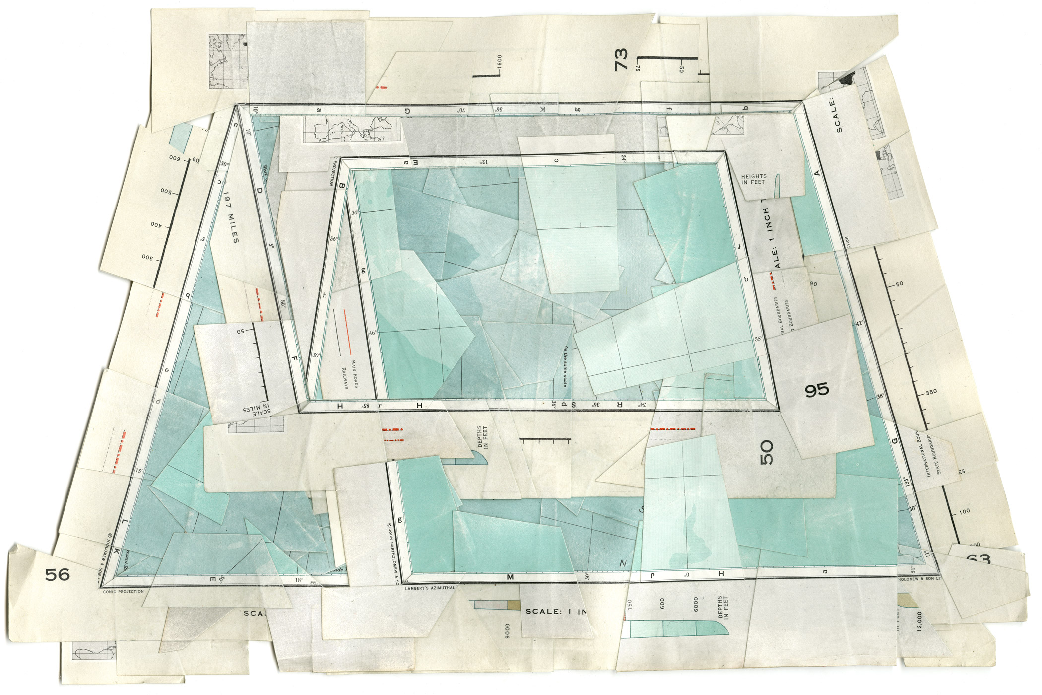 Echo Geometry 2016 builds on the Depths in Feet drawings, an ongoing series of collaged drawings, produced
