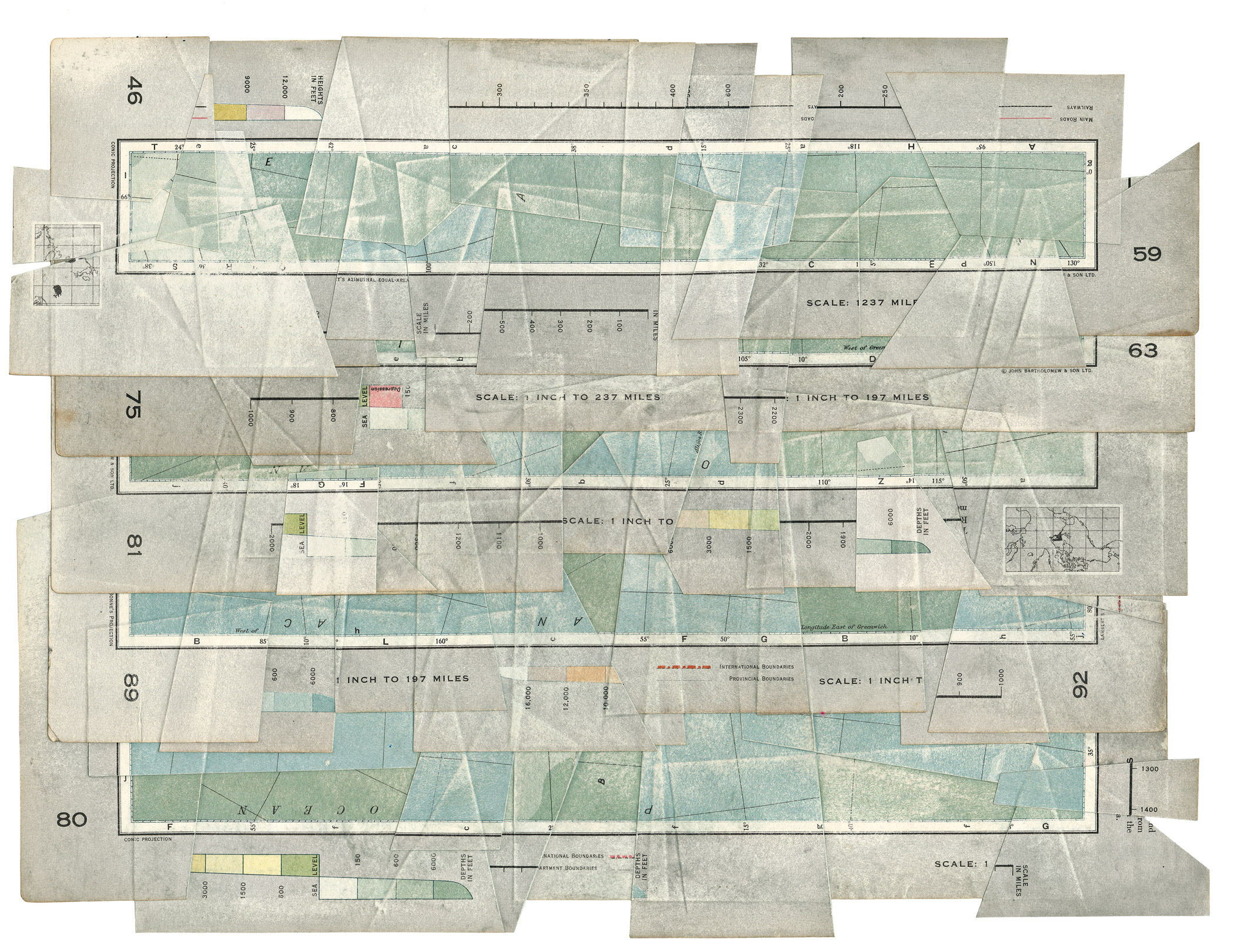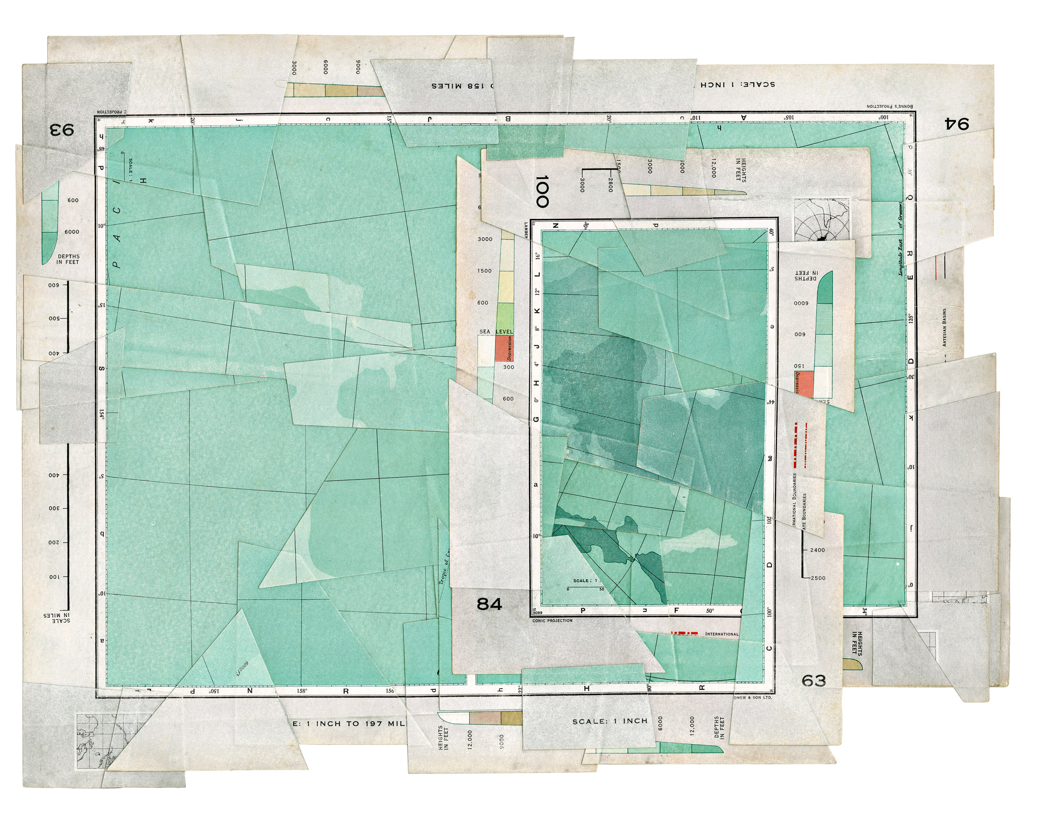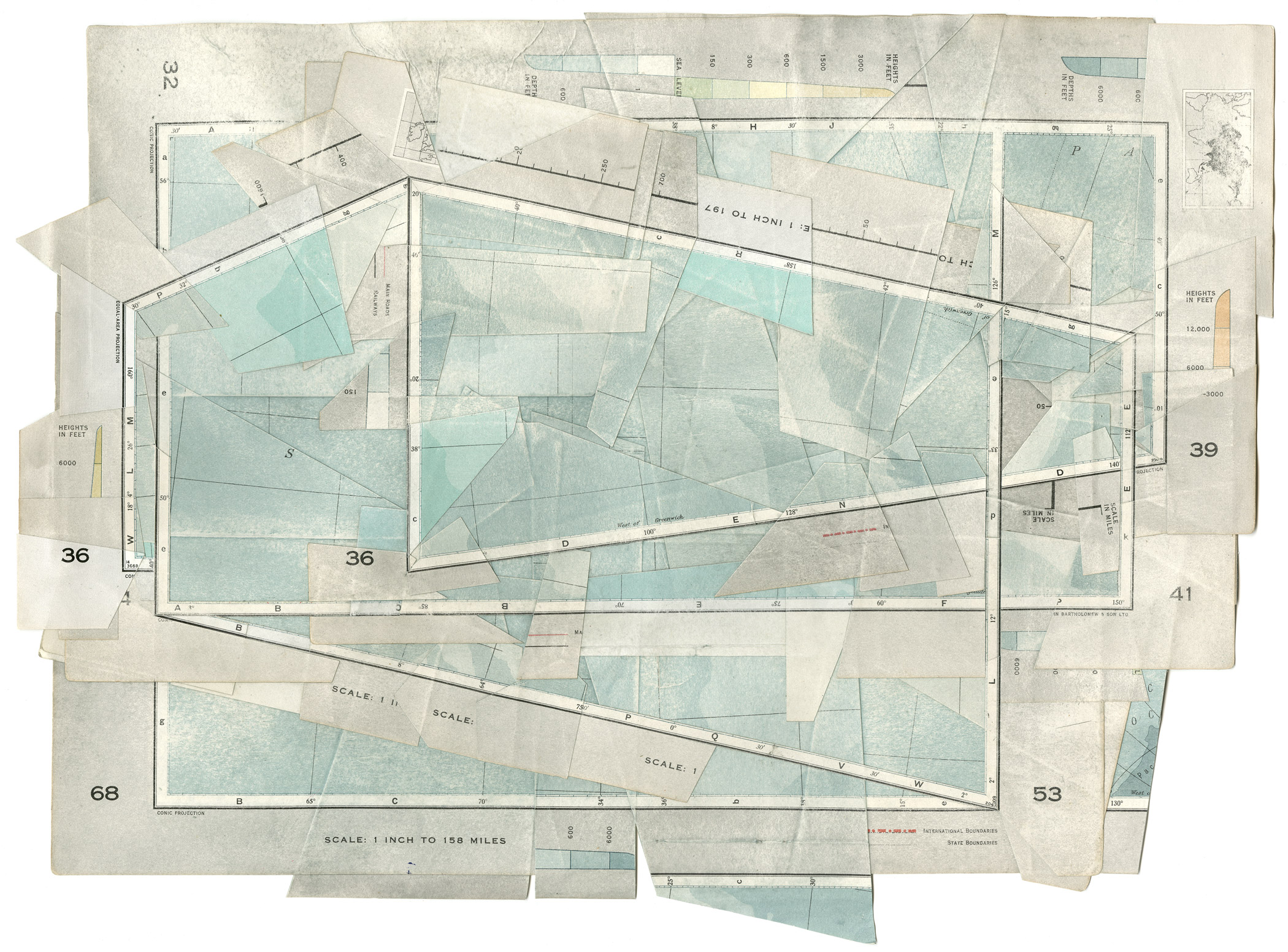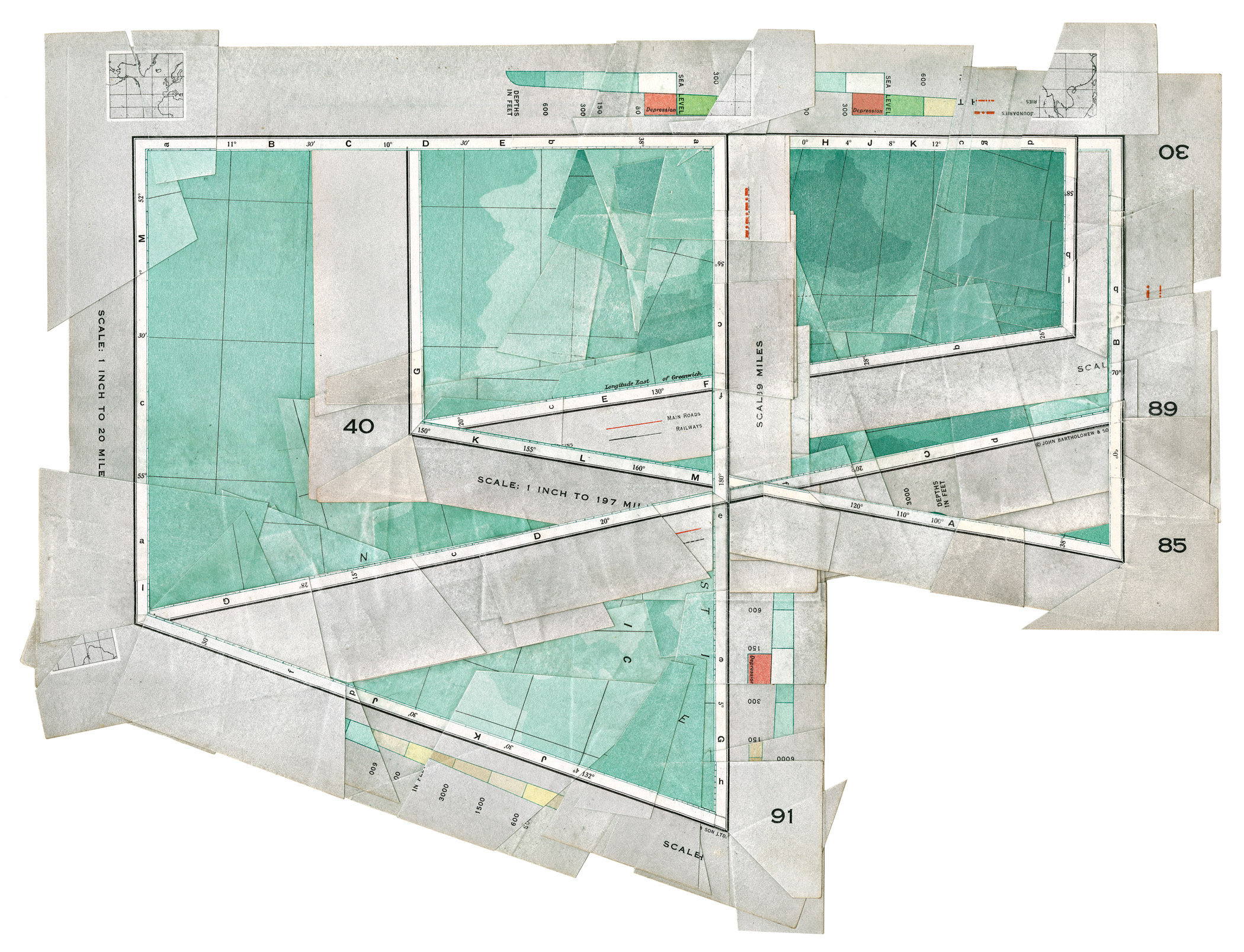 Echo Geometry 2016 builds on the Depths in Feet drawings, an ongoing series of collaged drawings, produced