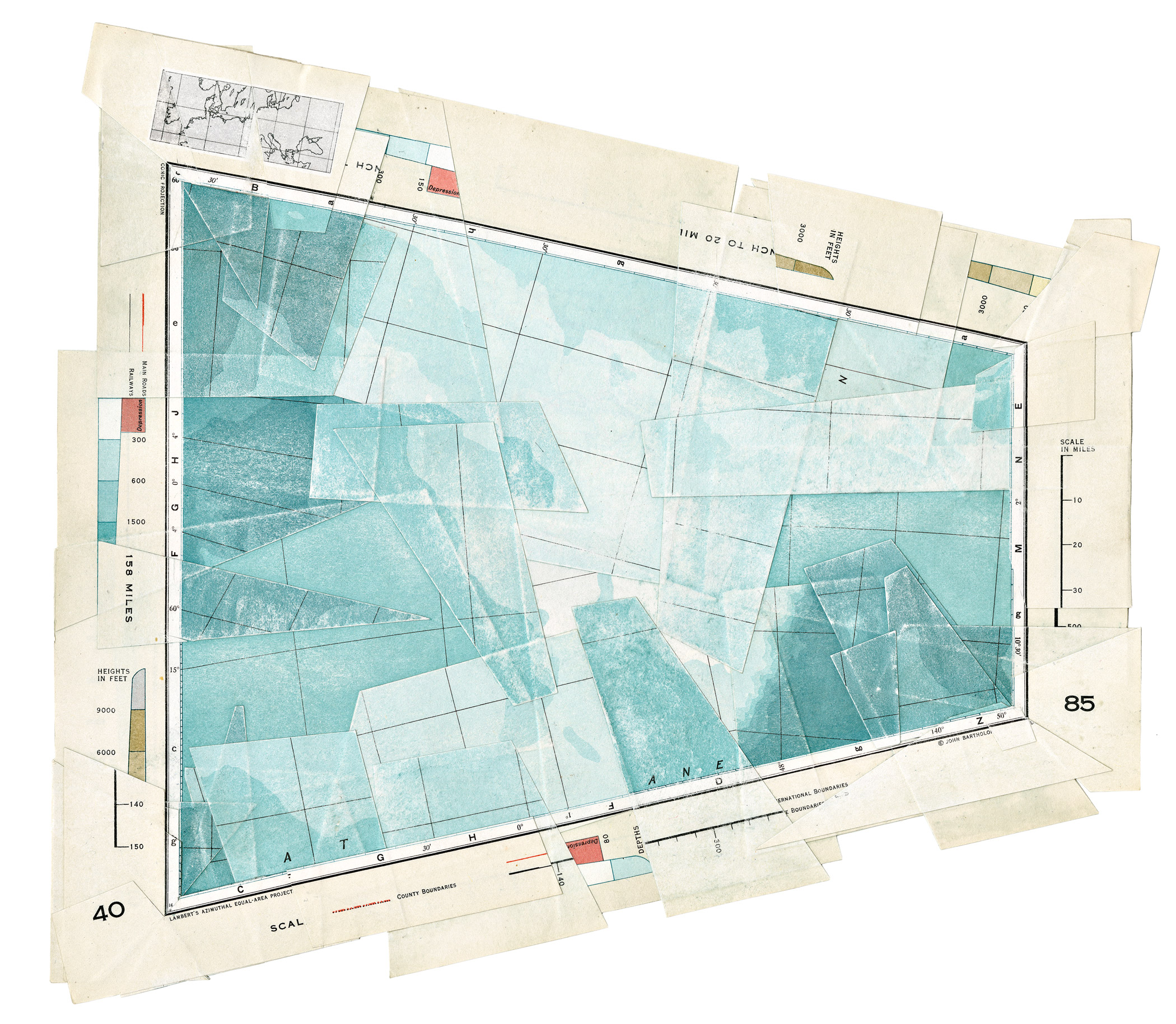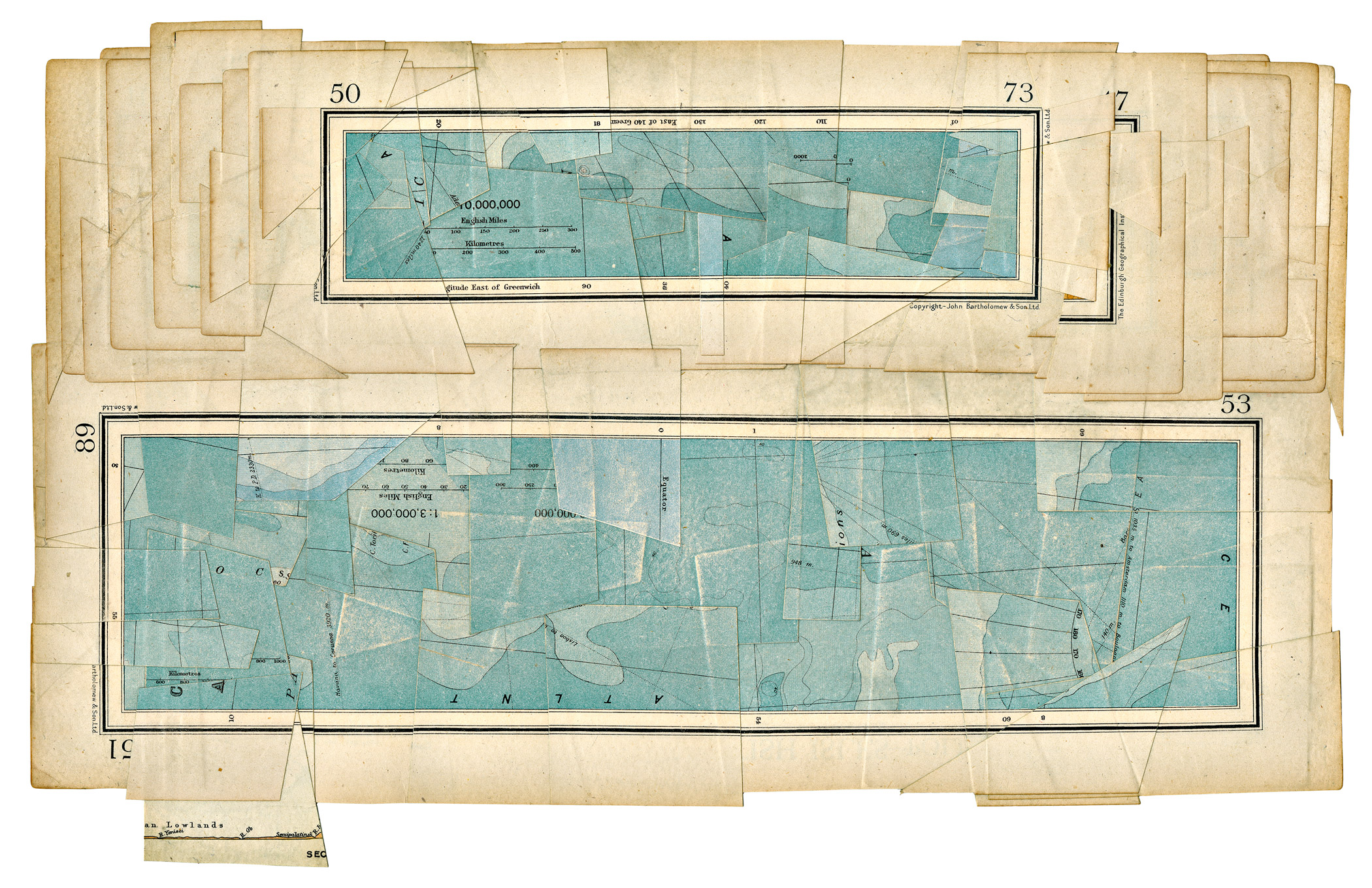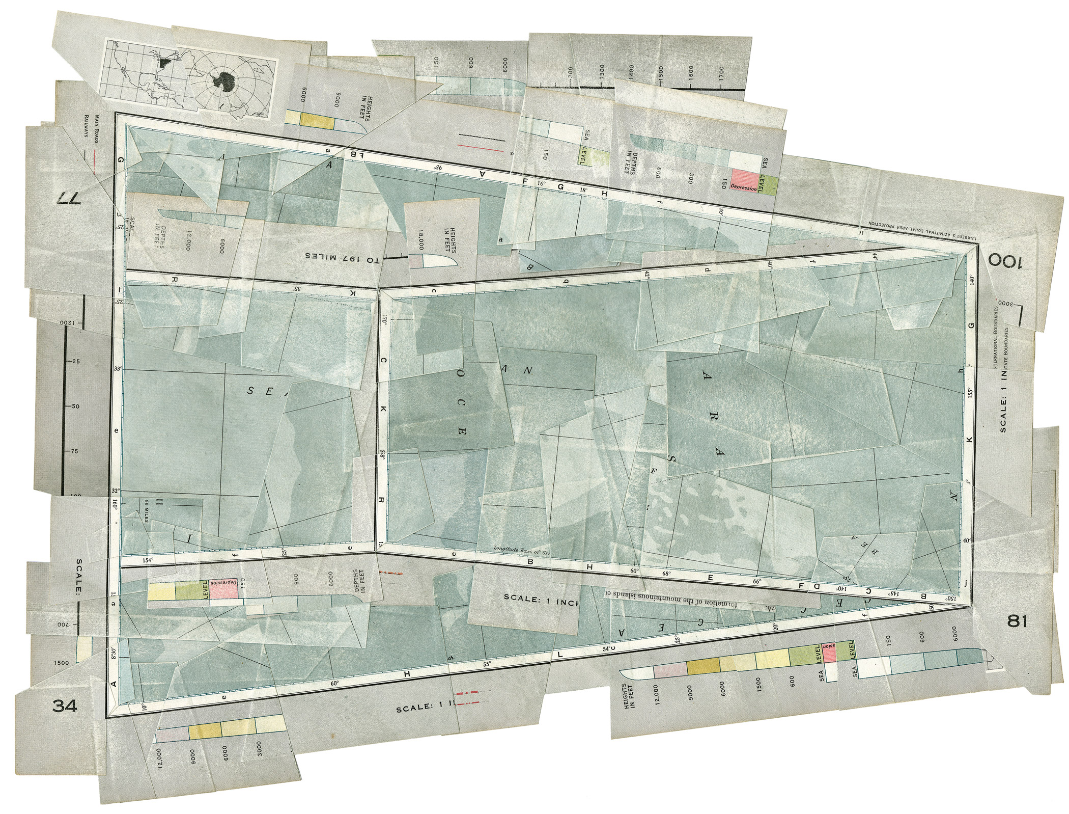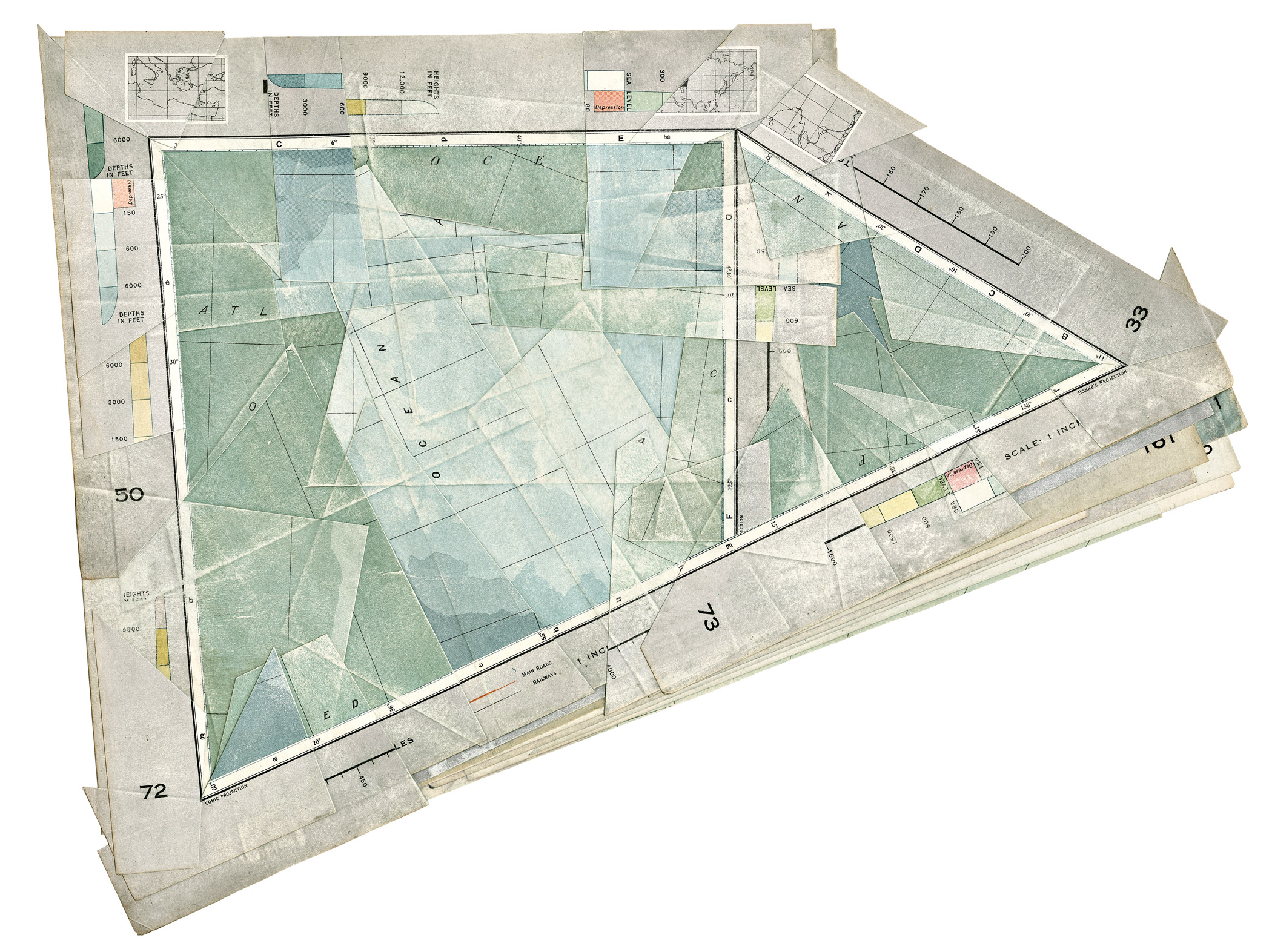 Echo Geometry 2016 builds on the Depths in Feet drawings, an ongoing series of collaged drawings, produced